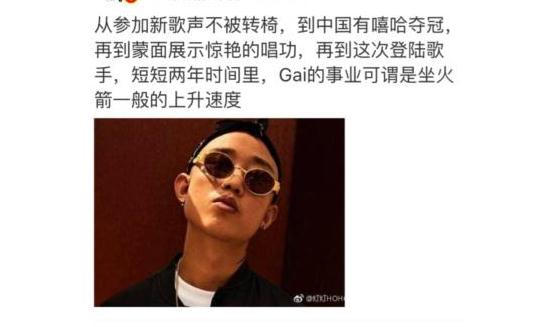 對(duì)于Gai的粉絲來說,這肯定是喜大普奔的好事、大事。他們說,雖然Gai今年才通過《中國有嘻哈》讓大家熟知,但是之前他已經(jīng)做歌手十幾年了,有著豐富的經(jīng)驗(yàn),上《歌手》一點(diǎn)問題也沒有,之前他也上了《蒙面唱將猜猜猜》,表現(xiàn)雖然有爭議,但是粉絲們認(rèn)為,這就是一種肯定。
